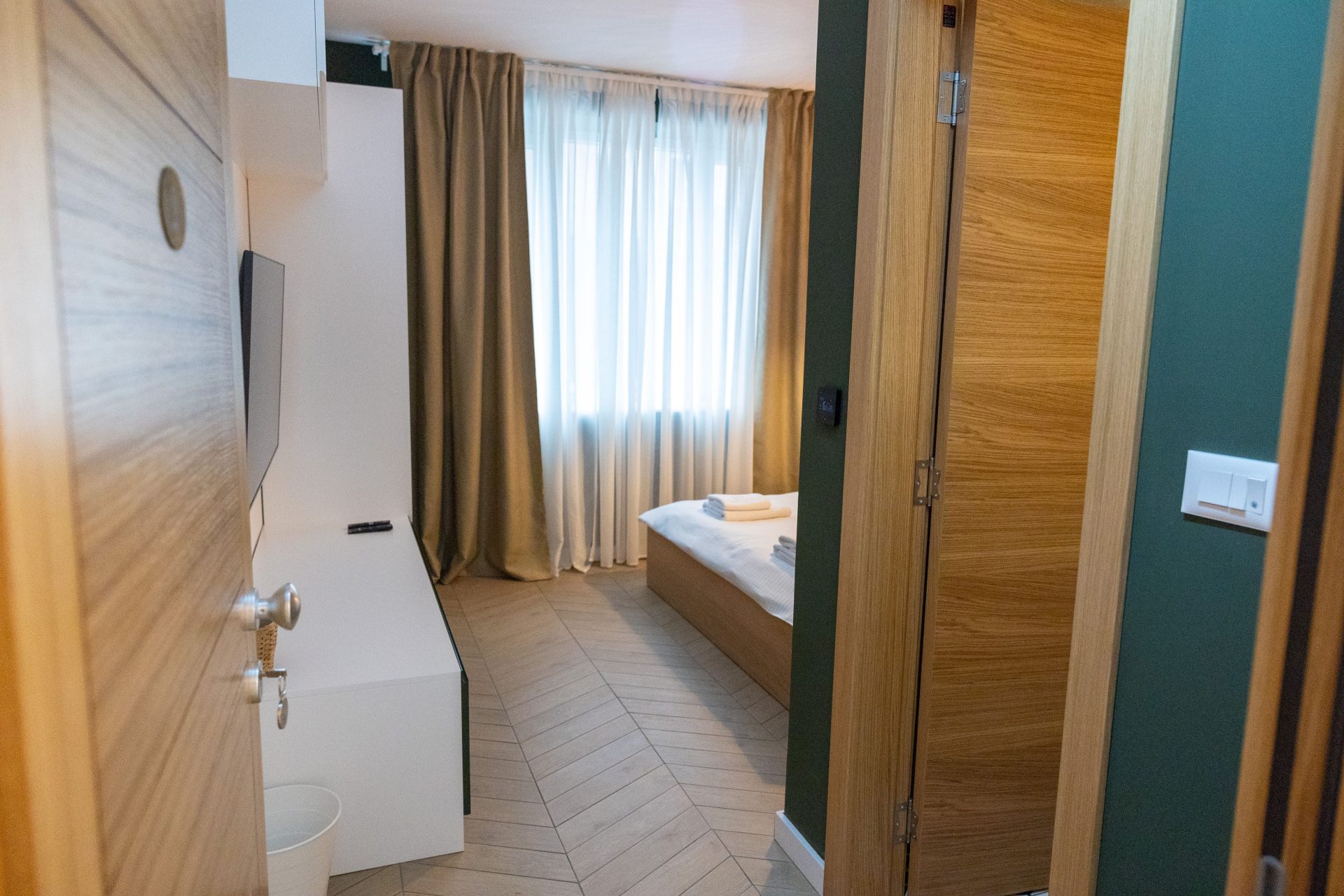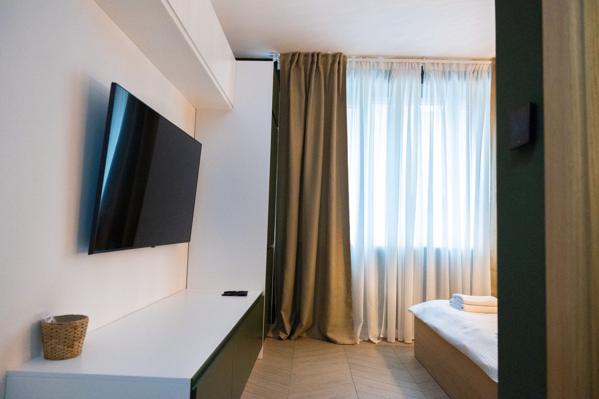 Osvežavajuće piće uvek vam je na dohvat ruke zahvaljujući praktičnom frižideru, dok veliki prozori unose obilje prirodnog svetla, stvarajući prijatnu atmosferu tokom dana. Zavese i draperije omogućavaju potpuno zamračenje za spokojan odmor noću.