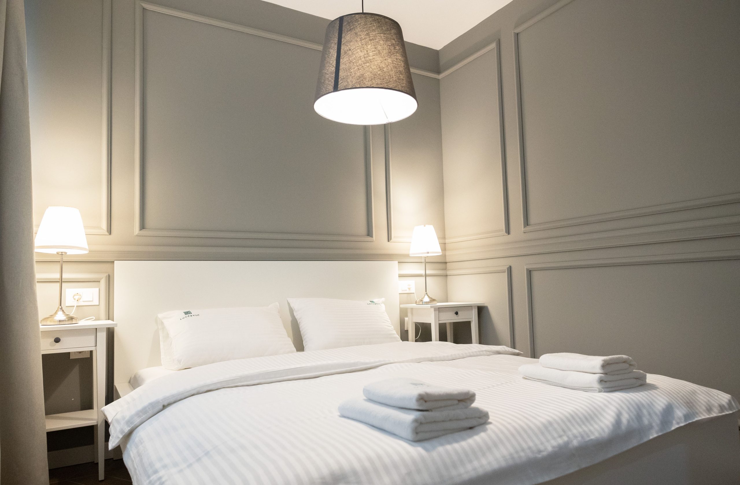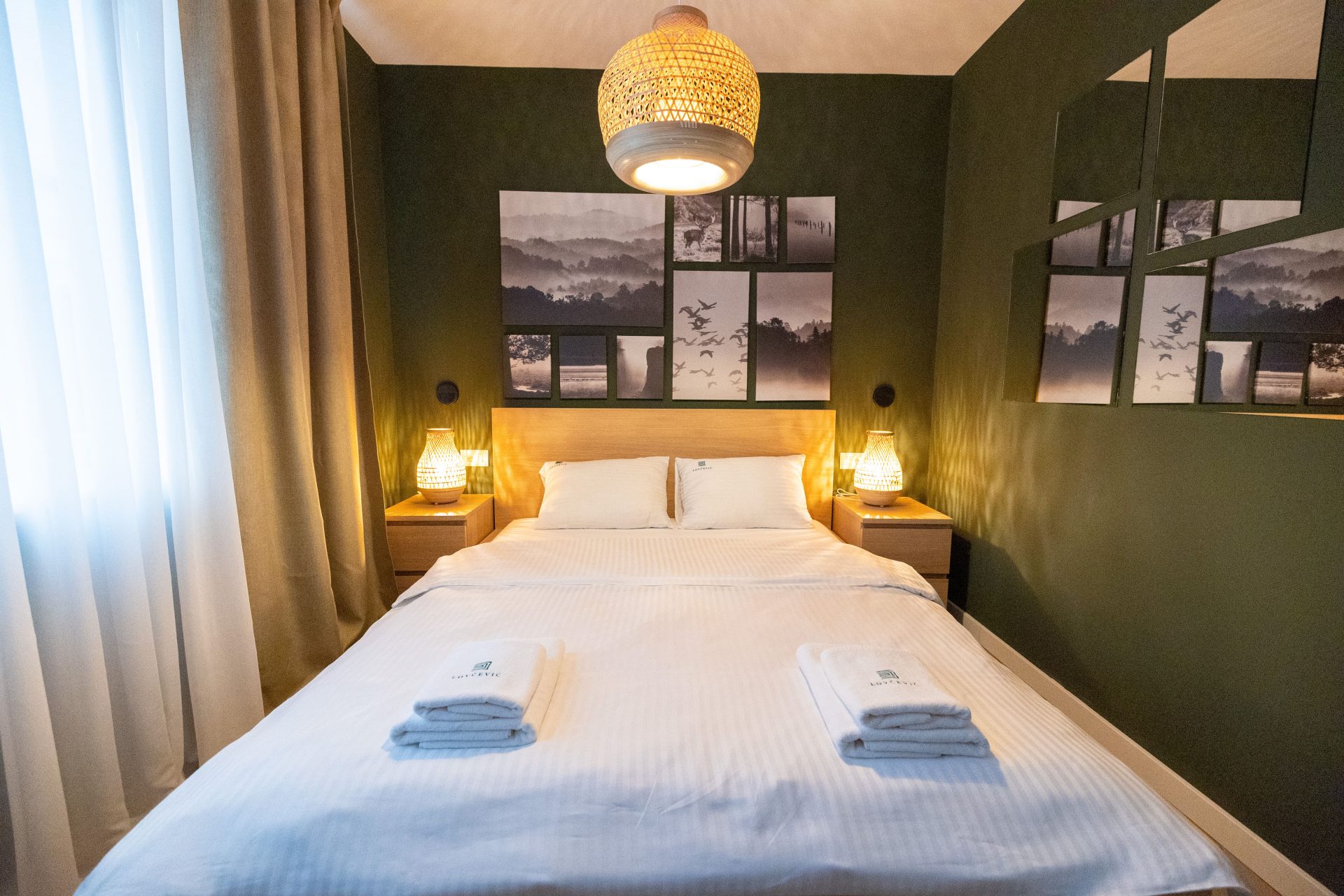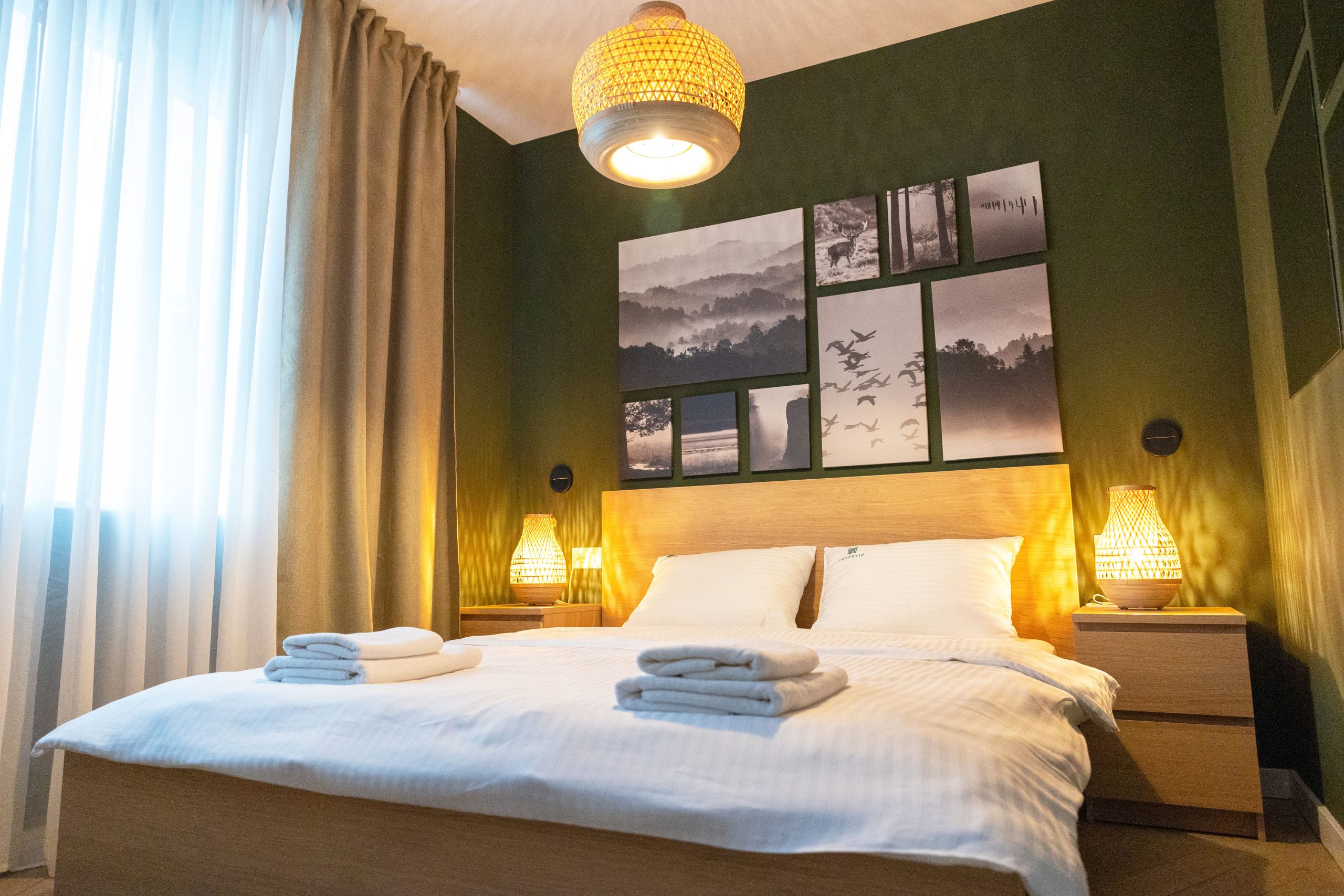 Središnji deo sobe zauzima bračni krevet dimenzija 200x180 cm sa luksuznim anatomskim dušekom, koji garantuje miran i osvežavajući san. Za trenutke odmora i zabave, na raspolaganju vam je veliki televizor od 56 inča, dok brzi Wi-Fi omogućava nesmetano povezivanje sa svetom.