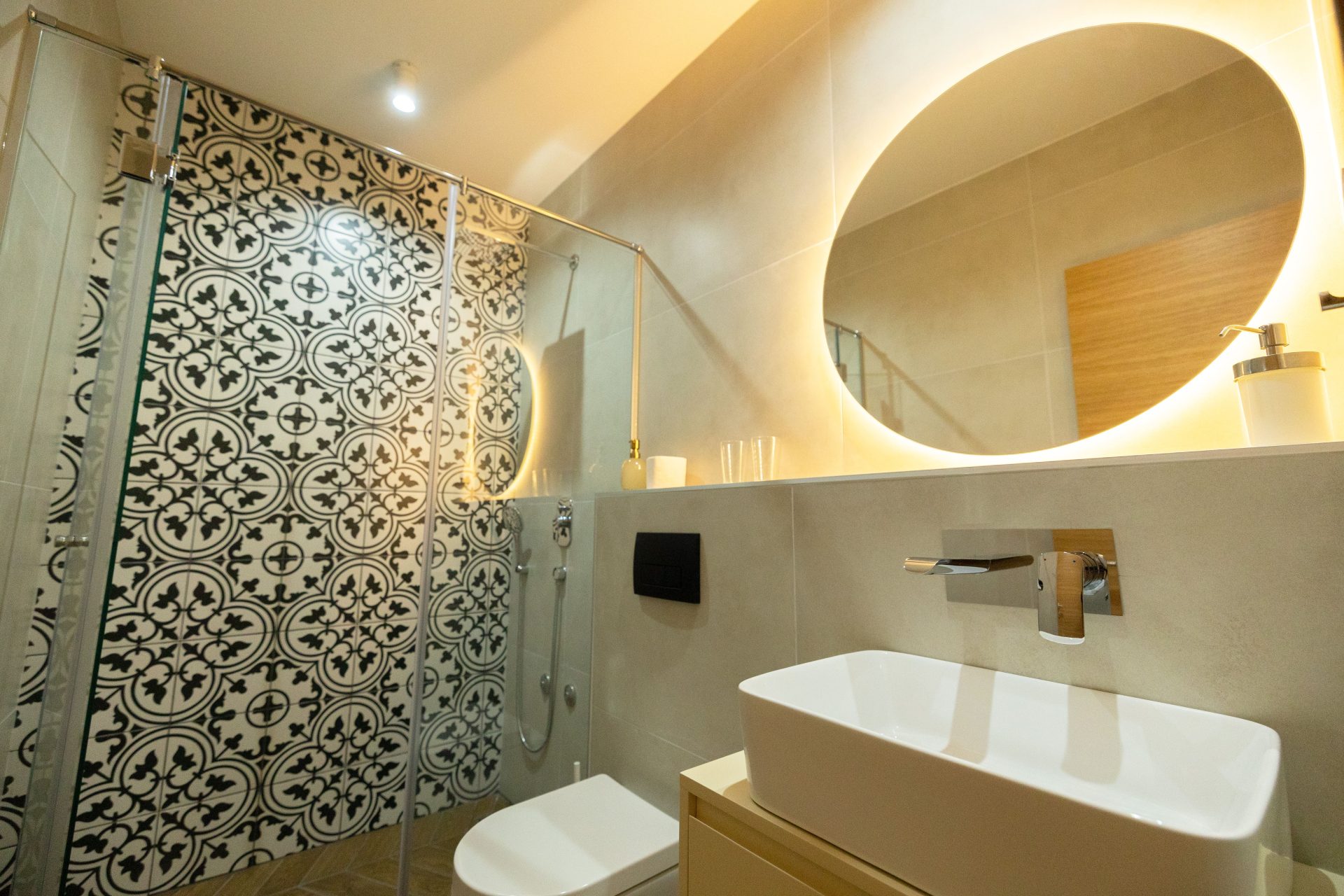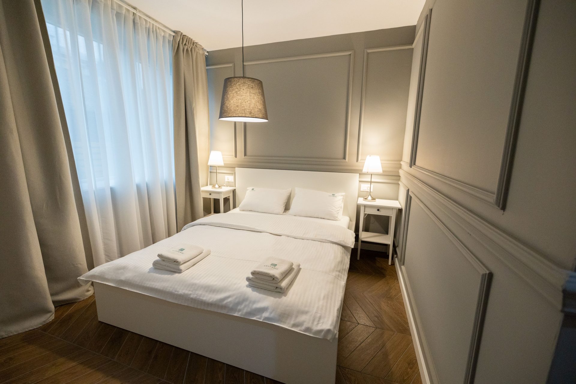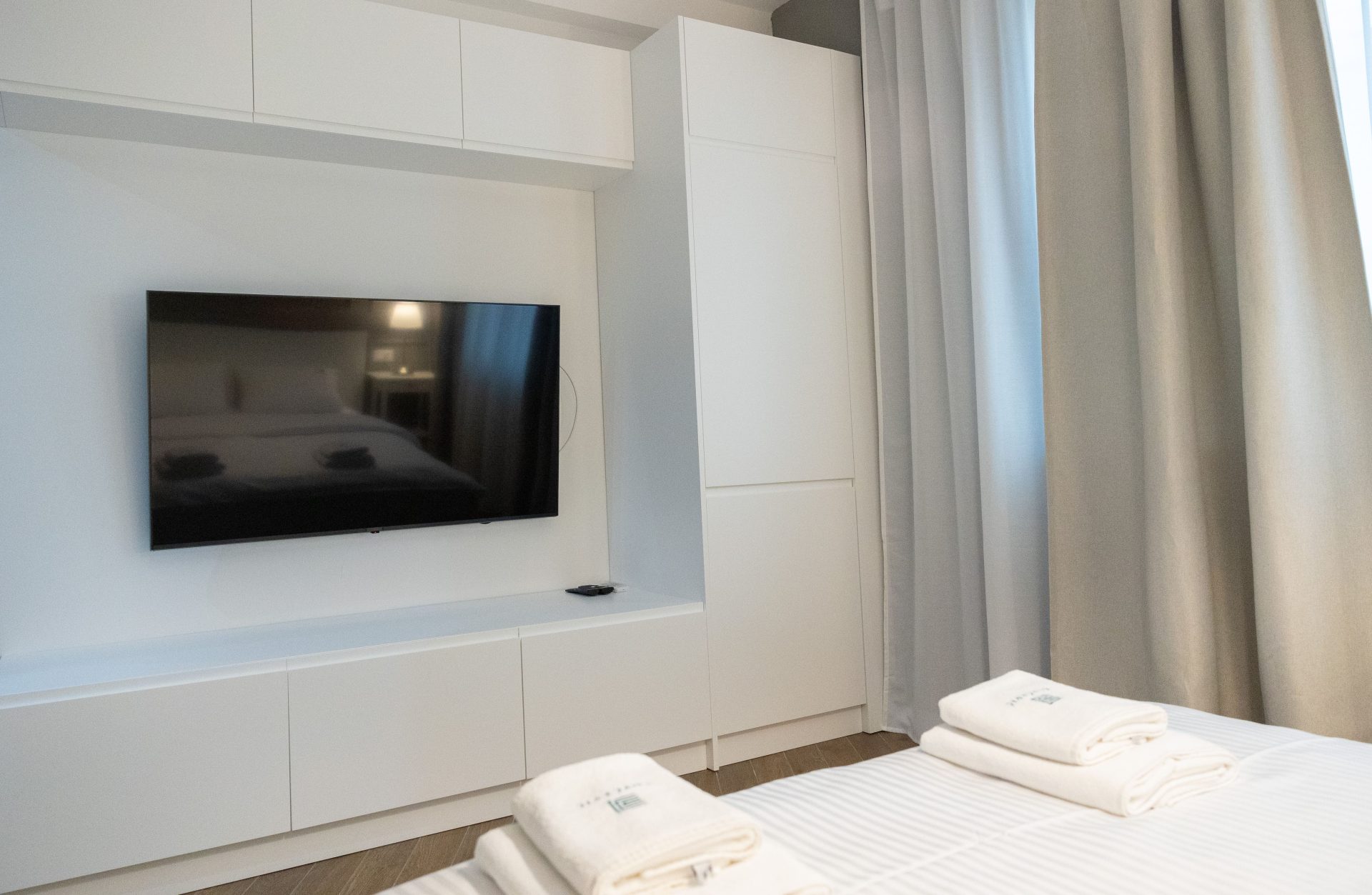 Središnji deo čini prostran bračni krevet dimenzija 200x180 cm sa luksuznim anatomskim dušekom, pružajući savršen san i regeneraciju. Moderni televizor od 56 inča omogućava vam da se opustite uz omiljene sadržaje, dok brzi Wi-Fi olakšava rad i povezivanje.